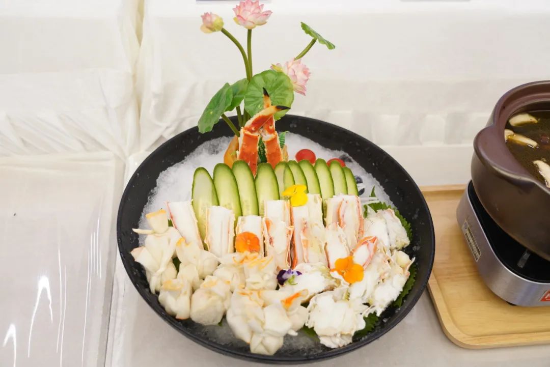 2024年主推新品组成的20余款菜式琳琅满目,香气四溢,吸引了众多餐饮客户的目光,大家纷纷打卡拍照。现场咨询不断,来自工厂及门店的资深负责人从养殖、加工到菜式推广为客户做一一解答。